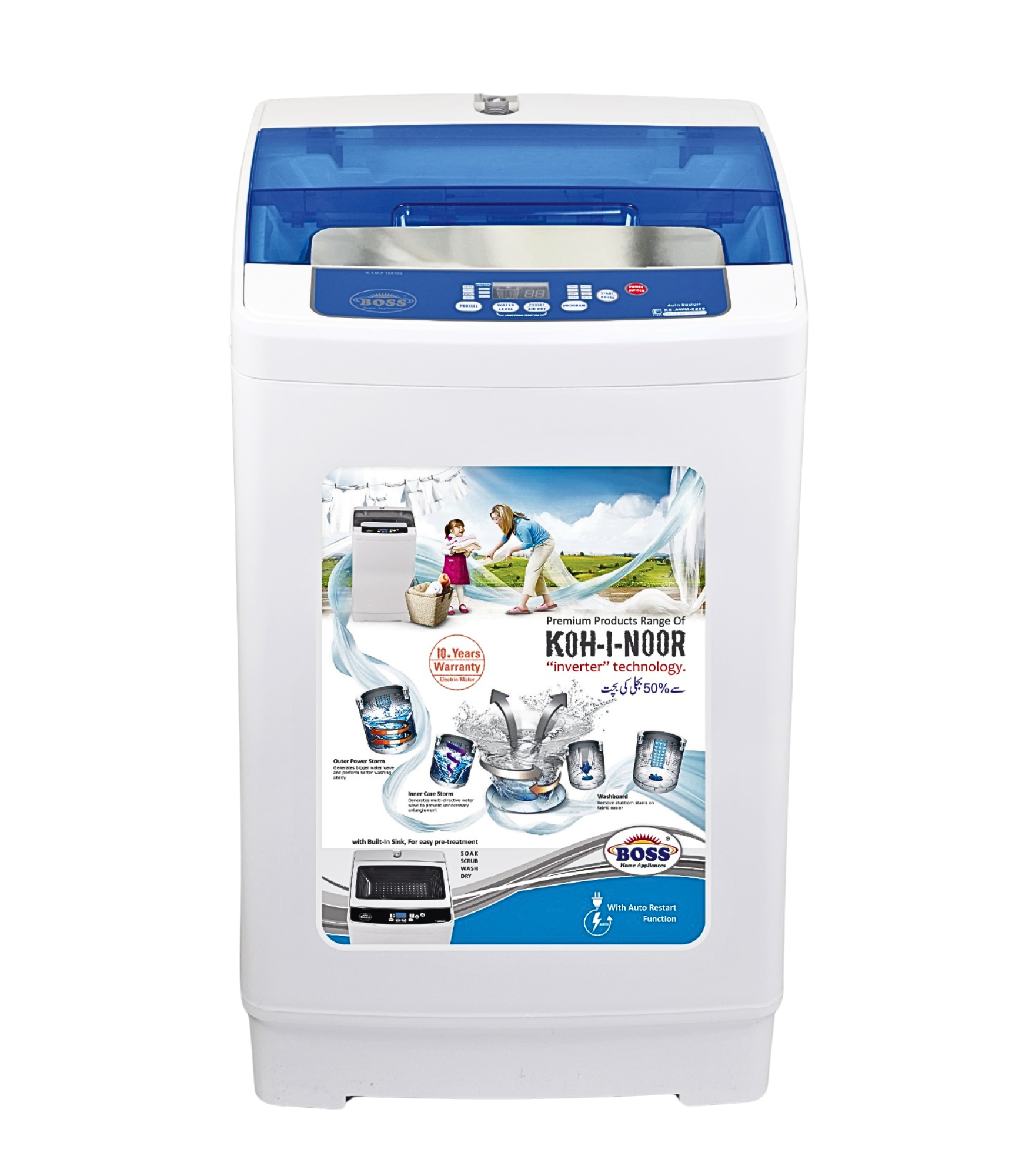 Automatic Washing Machine KE-AWM-8200 Platinum Blue White (10-Kgs)